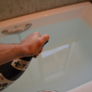 カズハーモニーでは、お風呂には天日塩と枇杷の葉を焼酎漬けしたエキス、